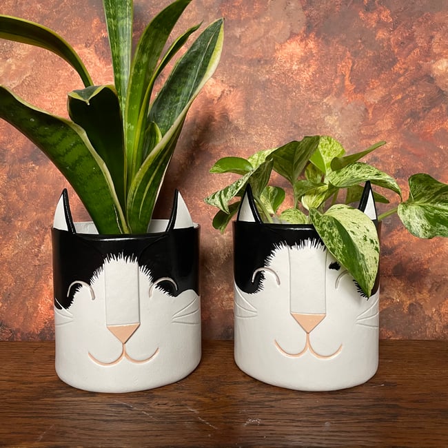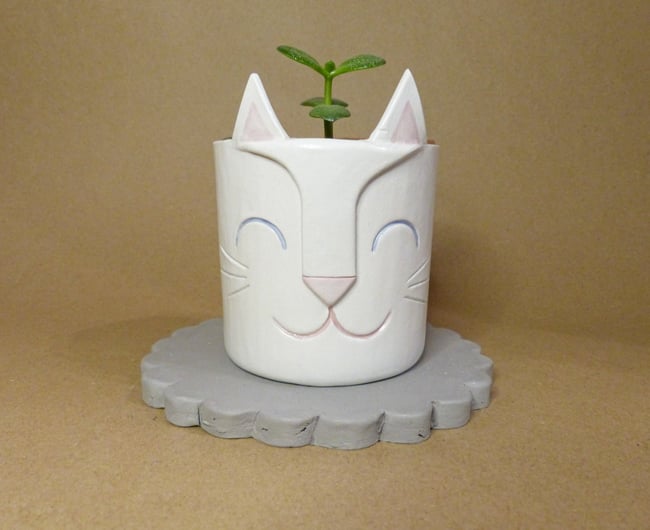 I can recreate your feline friend as completely custom made Cat Face Pot. I hand make each of these cute plant pots from scratch so each one is completely individual and with a different character.